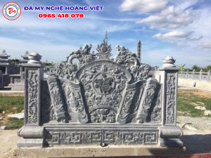Với bình phong đá được đặt cùng với các lăng mộ đá, vị trí nên được đặt chính là ở hướng chính diện ngay phía cổng ra vào. Tại đây, bình phong đá nên có kích thước lớn hơn cổng lăng mộ và chỉ nên có khoảng cách với cổng 50cm sao cho chỉ đủ cho 1 người. Hay một sự lựa chọn khác cho gia chủ là bình phong đá sẽ được đặt ở ngay bên dưới vị trí đặt lăng thờ chung. Kích thước thông thường của một bình phong đá chuẩn từ 147cm đến 167cm và không có hai cột đá bởi chi tiết này đã có ở cổng lăng mộ.